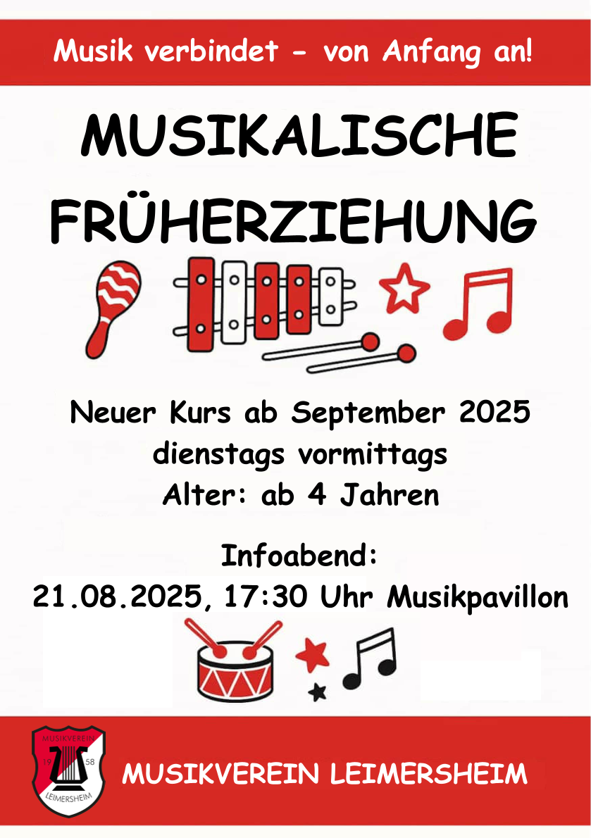 Musikfest 2025![]() Neuer Kurs: Musikalische Früherziehung![]() Musik begeistert, fördert und verbindet - und das schon im frühen Kindesalter! Deshalb startet der Musikverein Leimersheim nach den Sommerferien 2025 einen neuen Kurs zur musikalischen Früherziehung für Kinder ab 4 Jahren. In einer liebevollen und spielerischen Atmosphäre entdecken die Kinder gemeinsam die Welt der Klänge, Rhythmen und Lieder. Neben dem Singen, Tanzen und Musizieren mit einfachen Instrumenten stehen auch Motorik, Sprache und soziales Miteinander im Fokus - eine ideale Grundlage für jede musikalische Entwicklung! Wann? Der Kurs findet ab September 2025 immer dienstags um 8:30 Uhr statt. Wo? In den Räumlichkeiten der betreuten Grundschule Infoabend für interessierte Eltern: Am 21.08.2025 um 17:30 Uhr laden wir herzlich zu einem unverbindlichen Informationsabend in den Musikpavillon ein. Dort erfahren Sie alles rund um den Kurs, die Inhalte und die Anmeldung. Wir freuen uns auf kleine Musikentdecker - und auf Sie! Der Musikverein hat jetzt einen eigenen Instagram-Kanal!![]() Ab sofort findet ihr uns mit einem eigenen Kanal auf Instagram unter @mv_leimersheim. Dort gibts regelmäßig aktuelle Informationen, Einblicke hinter die Kulissen und aus dem Vereinsleben. Ob Proben, Auftritte, Ausflüge, Veranstaltungen oder sonstige besondere Momente, mit unserem Instagram-Kanal seid ihr immer dabei wie als wären ihr dabei. Am einfachsten findet ihr uns, indem ihr den beigefügten QR-Code scannt oder direkt auf Instagram nach mv_leimersheim sucht und uns folgt. Natürlich werden wir euch auch weiterhin über alle wichtigen Themen und Termine, wie zum Beispiel unserem Musikfest vom 16. bis 18. August 2025, hier auf der Webseite sowie im Heimatbrief ausführlich informieren.Jugendausflug MVL: Paddeltour & GrillenAm Samstag, den 24.05.25, fand der diesjährige Ausflug der Jugend des Musikvereins und ihren Betreuern bei bestem Wetter statt.Gestartet sind wir am Bootshaus des Freizeitclubs Leimersheim, gut ausgerüstet mit Schwimmwesten, Keksen und Saftschorlen. In fünf vollbesetzten Kanus ging unsere Paddeltour los, vom Bootshaus über das Fischmal, einmal um die Fontäne, dann ein Stückchen den Michelsbach hoch und wieder zurück. Dabei sorgten die schöne Natur, kleine Wettrennen oder Pausen, bei denen sich alle Boote versammelten für viel Unterhaltung. Anschließend sind wir zur Hütte des Pfälzerwaldvereins gewandert. Dort wurden wir mit bereits fertig gegrillten Bratwürsten und Gemüsebratlingen begrüßt und die Rasenfläche bei der Hütte wurde sofort zu einem großen Spielplatz umgewandelt. Klassische Spiele wie Fangen oder der gordische Knoten kamen super an. Aber auch neuere Spiele wie "Cornhole", bei dem man kleine Maissäckchen in ein Loch einer Holzplatte wirft, sorgten für Spaß. Wir bedanken uns beim Freizeitclub für das Bereitstellen der Kanus und beim Pfälzerwaldverein für das Zurverfügungstellen der Hütte!