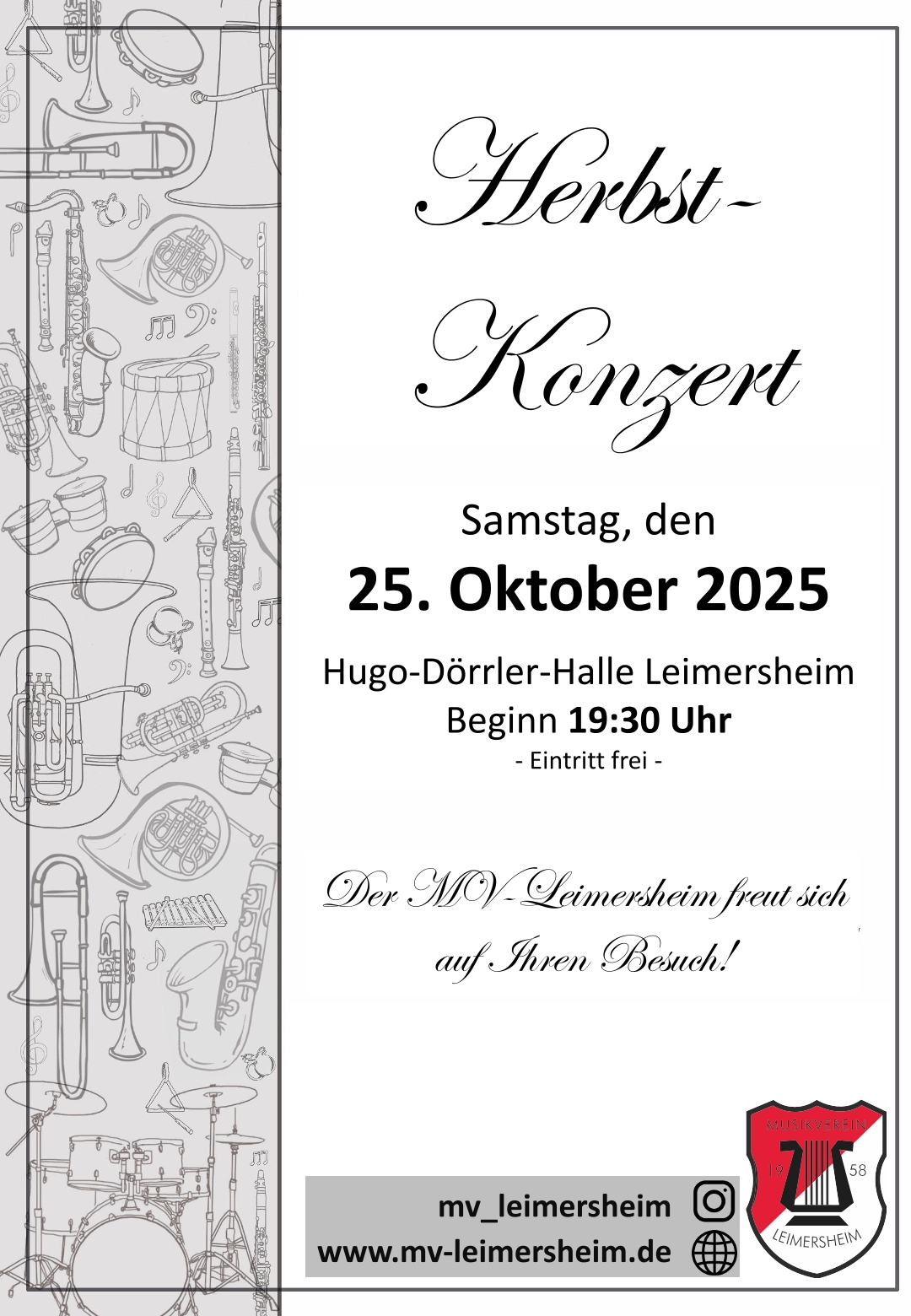 Der Musikverein lädt herzlich zu seinem Weihnachtskonzert am Dienstag, 26.12.2023, 17:30 Uhr in der Pfarrkirche in Leimersheim ein. Bereits zum 39. Mal spielen die Musikerinnen und Musiker dabei für einen guten Zweck. Dirigent Klaus Gehrlein hat auch in diesem Jahr ein wunderschönes und abwechslungsreiches musikalisches Programm zusammengestellt. Das Orchester spielt für Sie Weihnachtslieder und feierliche Musik aus aller Welt. Das traditionelle kurze Orgelkonzert, vorgetragen von Dr. Clemens Kuhn, sowie besinnliche Texte zur Weihnachtszeit runden das Programm ab. Und selbstverständlich werden auch in diesem Jahr die beiden Weihnachtskonzertklassiker "In heil'ger Nacht" und "White Christmas" nicht fehlen. Das Kirchenkonzert am 2. Weihnachtsfeiertag bietet die ideale Gelegenheit, für eine gute Stunde dem Trubel der Festtage zu entfliehen, wunderschöner Musik zu lauschen und dabei noch Gutes zu tun. Wir freuen uns auf Ihren Besuch! Herbstkonzert 2023Rückblick auf unser Herbstkonzert